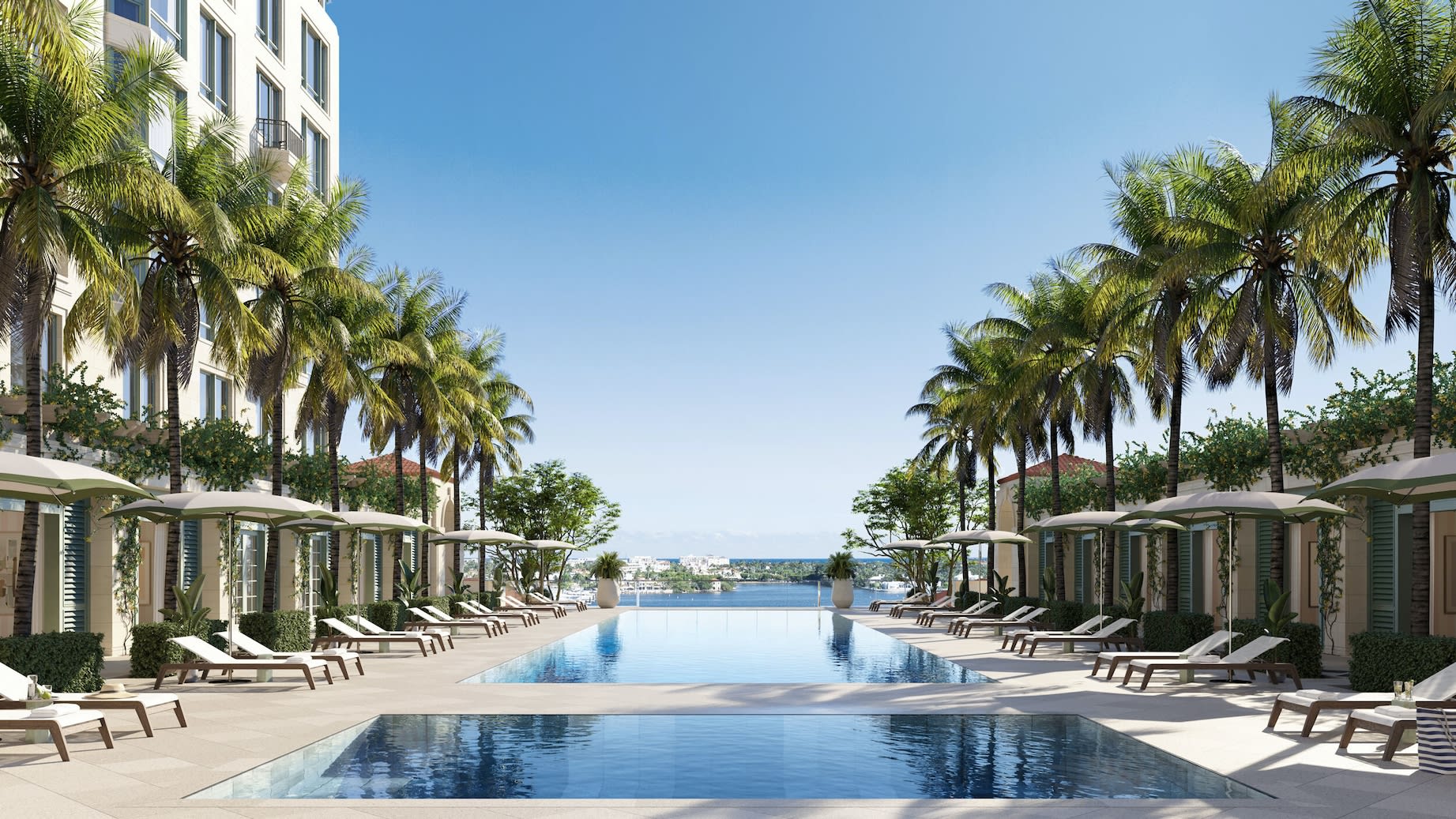 From world-class art installation to comprehensive sports, spa, fitness, and children’s recreation facilities, South Flagler House offers its residents of all ages a rich diversity of exceptional on-site amenities. The swimming pool with its stunning Lake views is adorned by private cabanas and connects to a host of indoor and outdoor social spaces. These include an entertainment lounge with a catering kitchen, private dining room, game room, library, media room, and wine tasting room. Executive conference rooms meet business needs while a comprehensive fitness center, pickle ball court, golf simulator lounge, Pilates, and yoga studio meet sports needs.